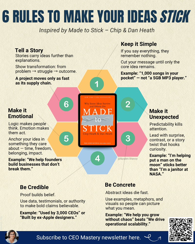 I built a cheatsheet: 6 Rules to Make Your Ideas Stick — designed for founders who want messages understood, shared, and acted upon.