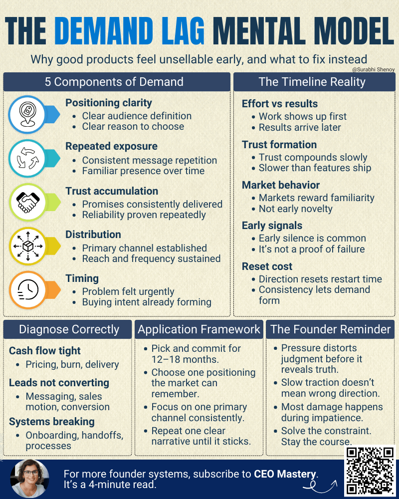 The founders who win understand that demand isn’t a switch. Demand is a lagging indicator of: